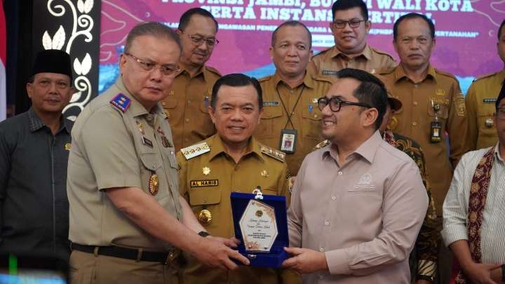 “Kami hadir disini memastikan bagaimana proses penerimaan negara bukan pajak berjalan baik di Provinsi Jambi. Juga untuk memastikan bahwa mitra kerja kami Kementerian ATR BPN dapat bersinergi sebaik mungkin dengan multi stakeholder, terutama pemerintahan daerah provinsi, kabupaten/kota untuk meningkatkan pelayanan sektor pertanahan dan tata ruang. Yang pada akhirnya tujuan kita memastikan seluruh jengkal tanah yang ada di Provinsi Jambi itu terdaftar memiliki legalitas,” sambungnya.