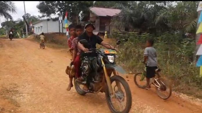 Kondisi jalan desa yang licin, becek, dan tergenang air kerap menjadi penghalang bagi anak-anak untuk menuntut ilmu. Selain menyulitkan, situasi tersebut juga berisiko terhadap keselamatan mereka. Melihat kondisi itu, Serma Riki Yakub tergerak untuk turun langsung membantu.