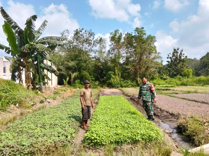 Dukung Ketahanan Pangan, Babinsa Turun Bantu Petani Bayam di Desa Tanjung