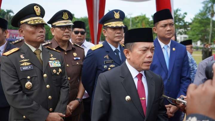 Redaksijambi.com.Jambi, – Gubernur Jambi Dr. H. Al Haris, S.Sos, MH bertindak sebagai inspektur upacara pada Peringatan Hari Kesaktian Pancasila Tahun 2025, yang diikuti oleh unsur Forkopimda Provinsi Jambi, para OPD Provinsi Jambi, TNI/Polri, ASN, mahasiswa dan pelajar sekolah serta undangan lainnya, bertempat di Lapangan Kantor Gubernur Jambi, Rabu (01/10/2025) pagi.