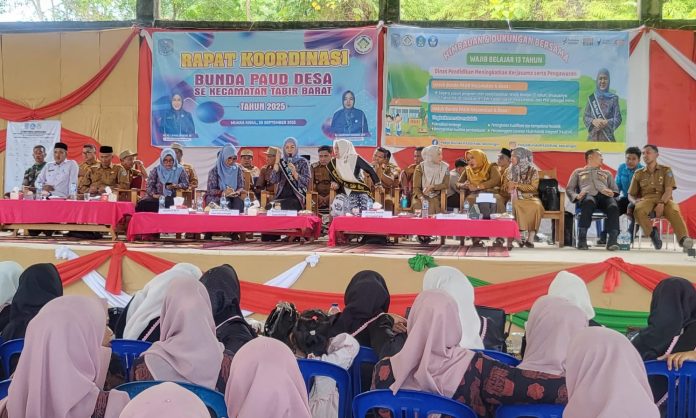 Redaksijambi.com, Merangin – Bunda Pendidikan Anak Usia Dini (PAUD) Kabupaten Merangin, Hj. Lavita Syukur, secara resmi membuka Rapat Koordinasi (Rakor) Bunda PAUD Desa se-Kecamatan Tabir Barat. Kegiatan dipusatkan di Gedung Serba Guna Datuk Bagindo Rajo, Desa Muara Kibul, Selasa (30/9/2025).