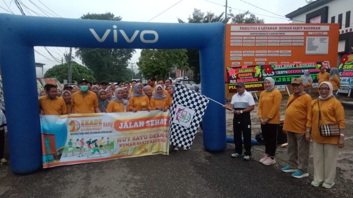 Kegiatan yang mengusung tema “Dedikasi Tiada Henti, Pelayanan Sepenuh Hati” tersebut dipusatkan di halaman RS Raudhah dan diikuti peserta dari berbagai kalangan, mulai dari karyawan rumah sakit, instansi, hingga masyarakat umum.