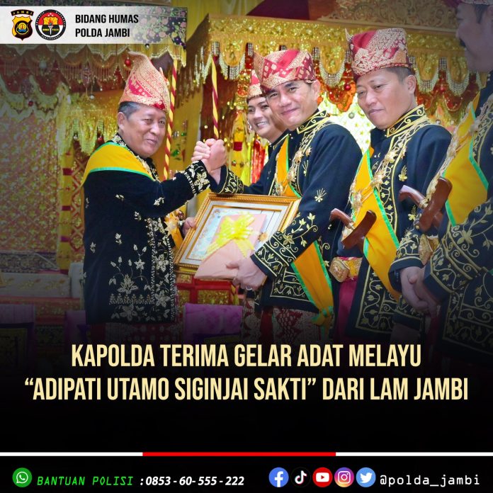 Penganugerahan gelar adat tersebut diberikan sebagai bentuk penghormatan atas dedikasi dan pengabdian Kapolda Jambi dalam menjaga keamanan dan ketertiban masyarakat di Provinsi Jambi, sekaligus memperkuat sinergi antara institusi negara dengan nilai-nilai adat dan budaya Melayu Jambi.