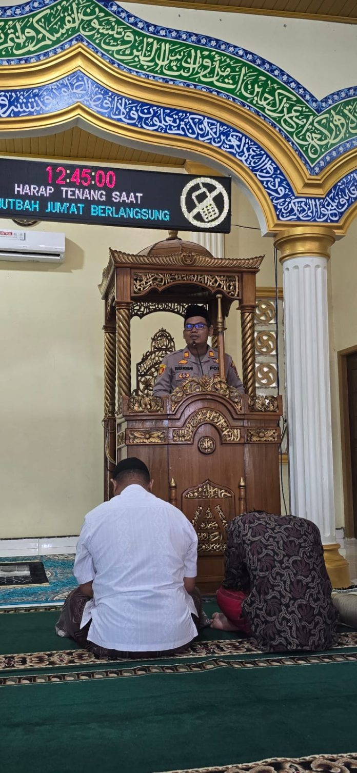 Redaksijambi.com (MERANGIN) – Kapolsek Tabir Selatan, AKP Fatkur Rohman, SH., MH., mengisi khutbah Jumat di Masjid An-Nur, Perumahan Merangin Raya, Kelurahan Dusun Bangko, Kecamatan Bangko, Kabupaten Merangin, Jumat (06/03/2026).
