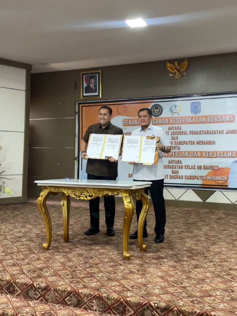Redaksijambi.com (Merangin) — Pemerintah Kabupaten (Pemkab) Merangin bersama Kantor Wilayah (Kanwil) Direktorat Jenderal Pemasyarakatan (Ditjenpas) Jambi resmi menandatangani Memorandum of Understanding (MoU) tentang penguatan sinergi dalam penyelenggaraan dan pembinaan pemasyarakatan.