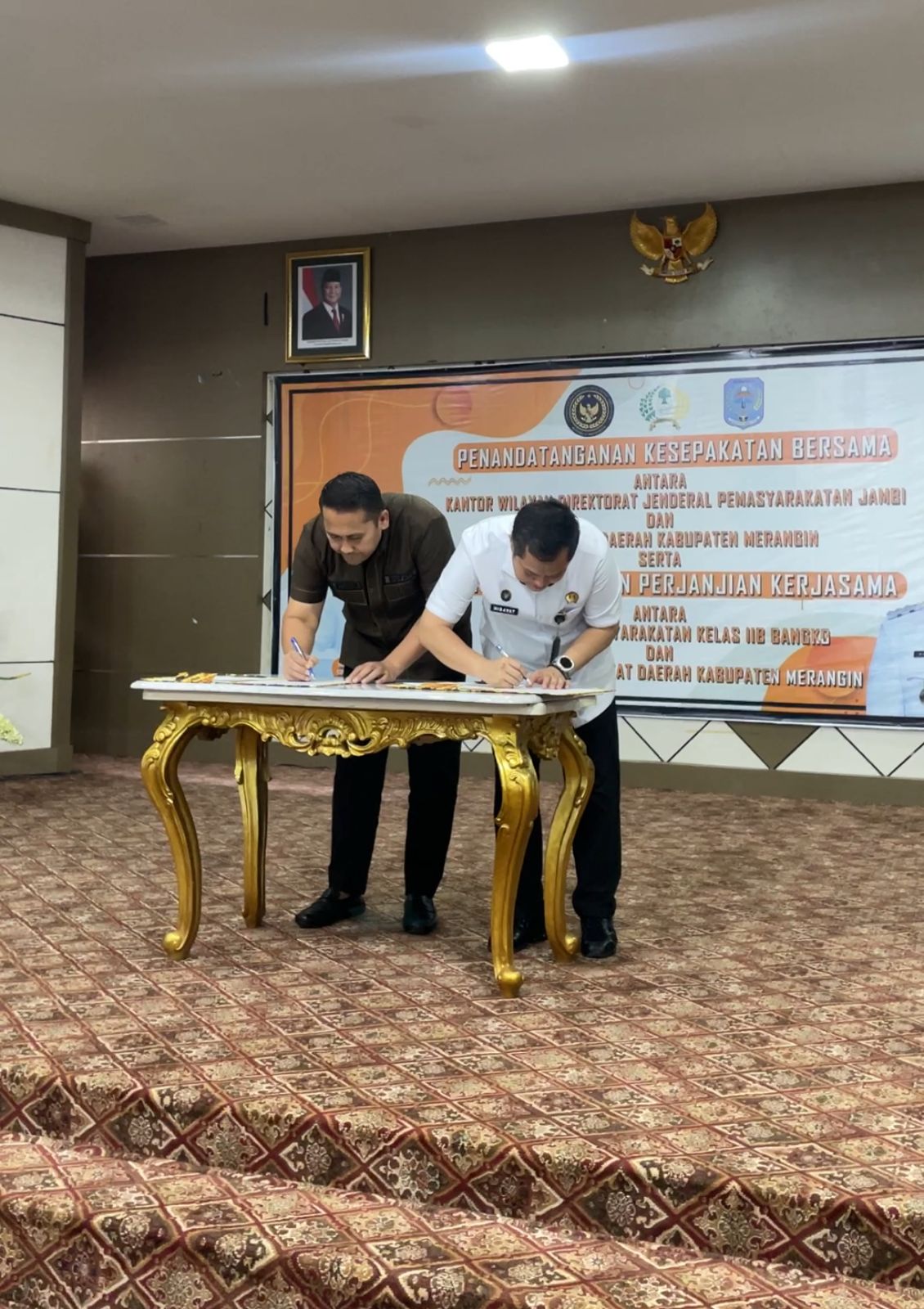 Redaksijambi.com (Merangin) — Pemerintah Kabupaten (Pemkab) Merangin bersama Kantor Wilayah (Kanwil) Direktorat Jenderal Pemasyarakatan (Ditjenpas) Jambi resmi menandatangani Memorandum of Understanding (MoU) tentang penguatan sinergi dalam penyelenggaraan dan pembinaan pemasyarakatan.