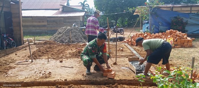 “ya hari ini pembangunan pondasi sudah kita rampungkan, dan kami hadir di sini bukan hanya untuk membangun rumah, tetapi juga untuk membangun kebersamaan dan harapan,” ujar Kopda Tri Wibowo.