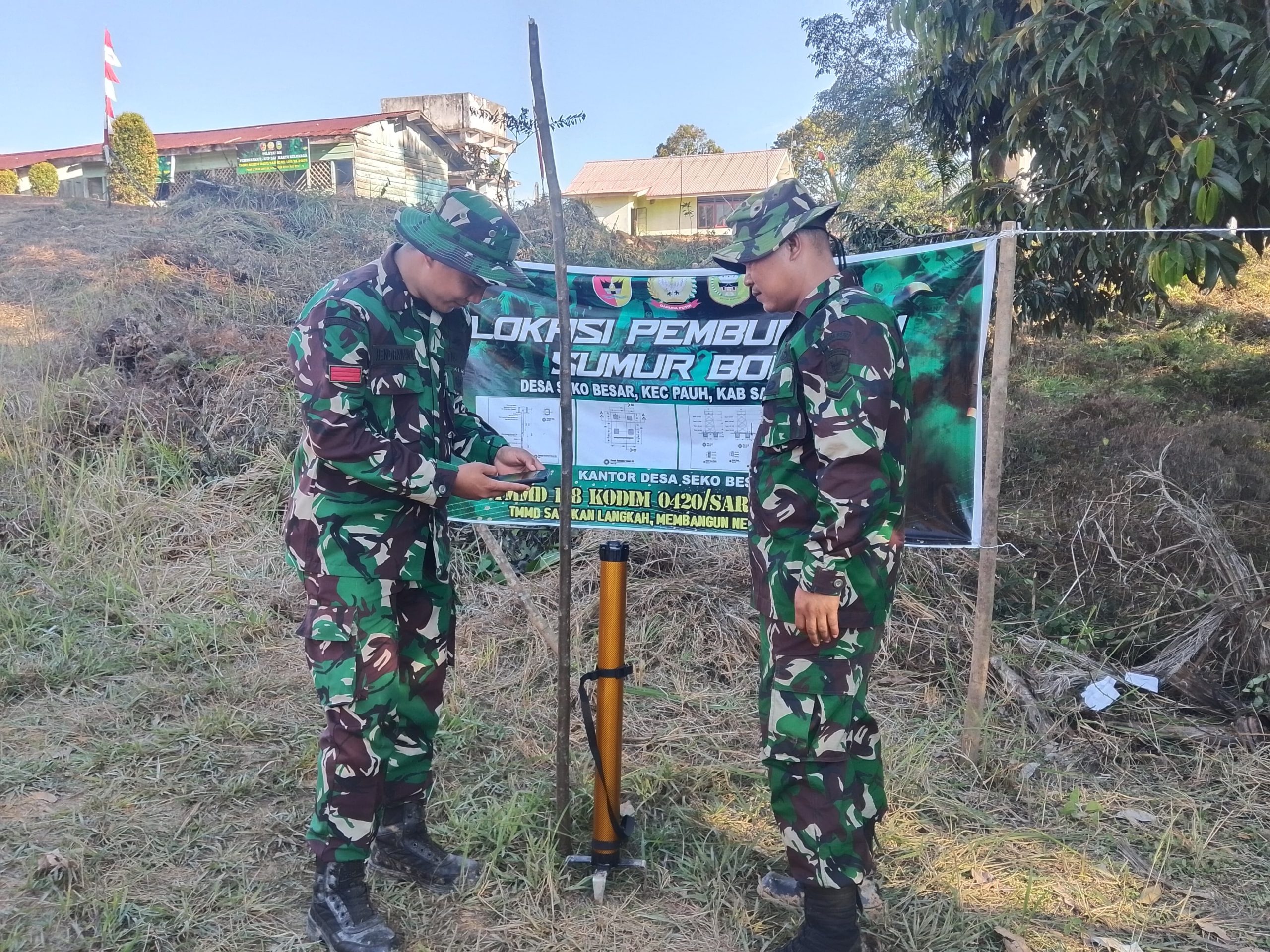 Redaksijambi.com (Sarolangun) — Anggota Satuan Tugas (Satgas) TMMD ke-128 Kodim 0420/Sarko terus menunjukkan dedikasi dalam mendukung pembangunan infrastruktur serta meningkatkan kesejahteraan masyarakat. Salah satu langkah yang dilakukan adalah mencari sumber air bersih dengan memanfaatkan teknologi modern.
