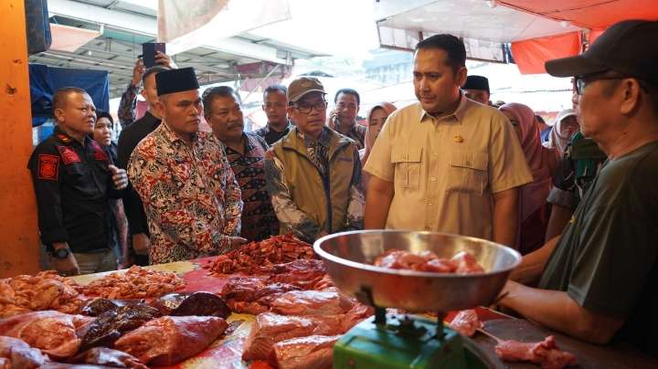 “Harga daging sapi masih stabil di Rp140.000 perkilogram. Mungkin nanti H-1 atau H-2 sudah naik dikisaran Rp 150.000,” ujar Effendi pedagang daging sapi kepada Bupati M. Syukur.