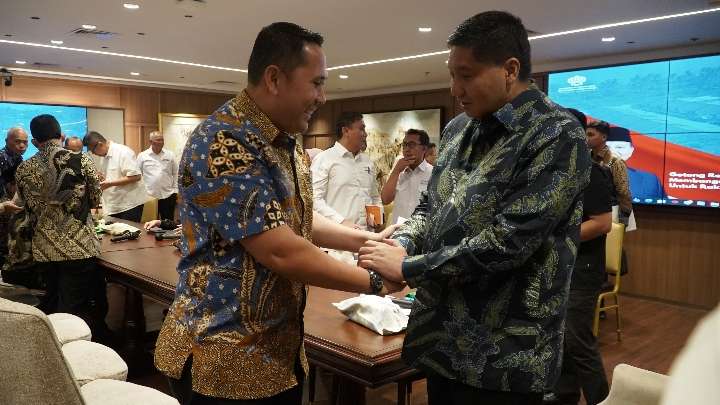Bupati Merangin, M. Syukur, mendampingi Gubernur Jambi beserta sejumlah kepala daerah melakukan audiensi dengan Menteri Perumahan dan Kawasan Permukiman (PKP) RI, Maruarar Sirait, di Wisma Mandiri, Jakarta, Senin (23/2).